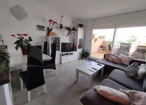 Se vende encantador apartamento de dos dormitorios ubicado en la urbanización de Monteblanco Norte, en el km 3 de La Manga, con impresionantes vistas al Mar Menor y al Mirador de Monteblanco. Esta propiedad, muy