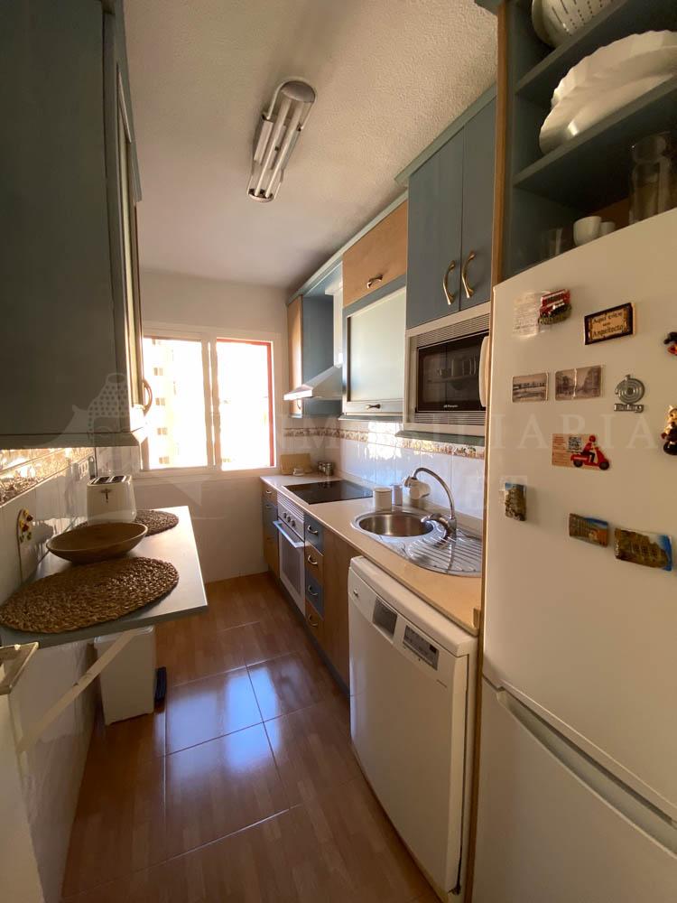 Se ofrece a la venta un apartamento en muy buen estado situado en primera línea del Mar Mediterráneo, en el kilómetro 7-8 de La Manga, en la zona del Casino. Esta propiedad cuenta con tres dormitorios y dos cuartos de baño, un salón comedor confortable y cocina independiente completamente equipada con electrodomésticos como lavavajillas, microondas, etc, lavadero cerrado, aire acondicionado y una agradable terraza con vistas al Mar Menor. La vivienda dispone también de mallorquinas nuevas. Todo el interior está muy cuidado.