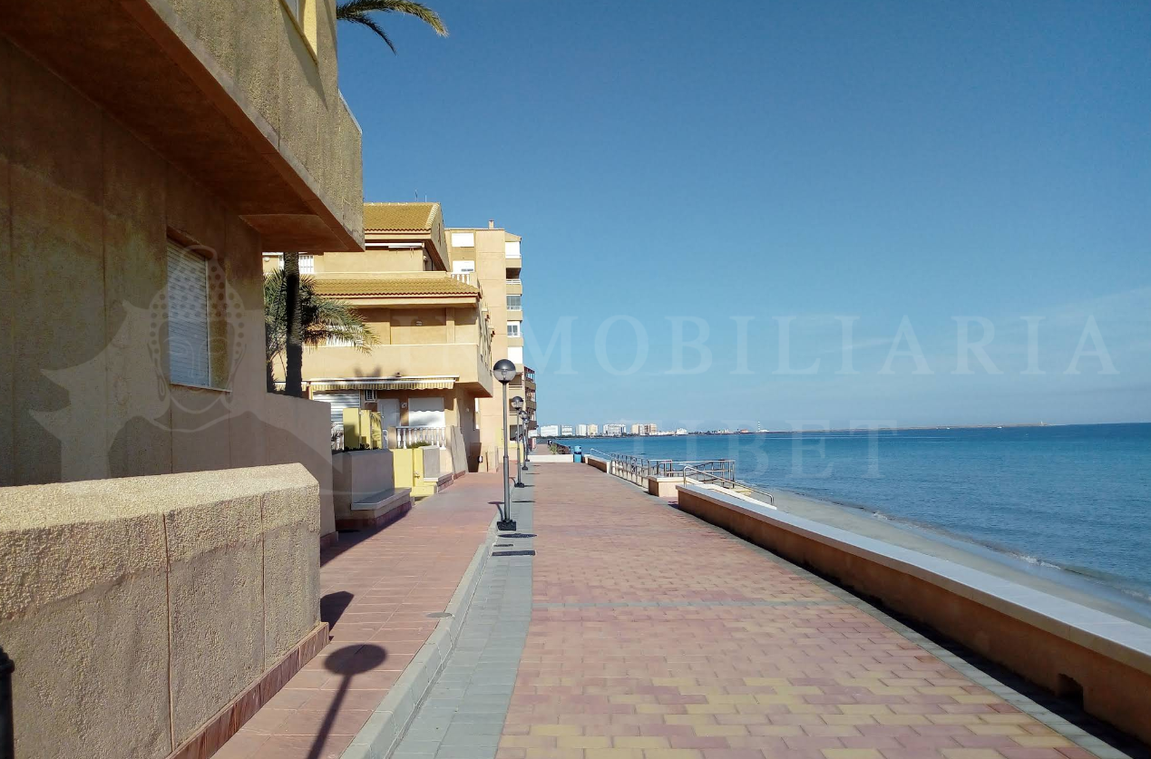 Gran oportunidad para adquirir un amplio dúplex situado en la urbanización Playa Blanca, en primera línea del Mar Mediterráneo con vistas al Mar Menor. La vivienda dispone de salón comedor, amplia terraza con unas vistas panorámicas al mar, cocina independiente, 3 dormitorios amplios, 1 baño completo y 1 aseo. Dispone también de aire acondicionado y toldos de buena calidad. La Urbanización dispone de zona ajardinada, buen acceso a las playas, piscina amplia y garaje subterráneo. Se vende con plaza de garaje y trastero.