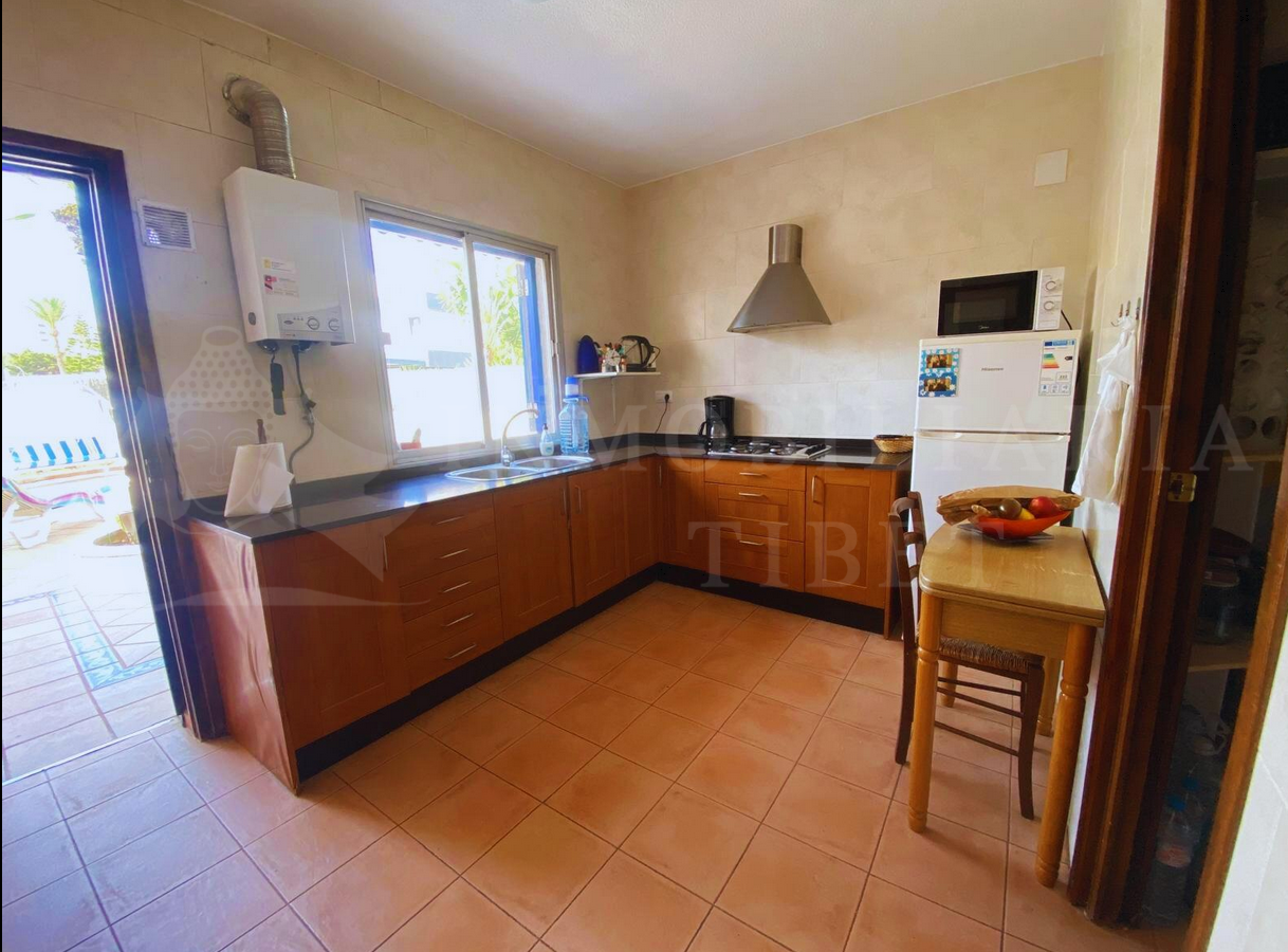 El salón-comedor es amplio y acogedor y la cocina independiente ofrece gran capacidad de almacenamiento. En el exterior, disfrutarás de una piscina privada rodeada de un hermoso jardín, además de un solárium con vistas al Mar Menor.