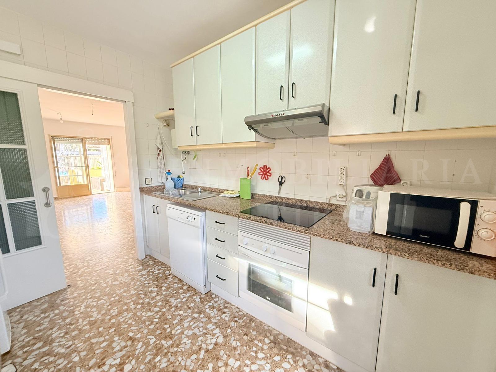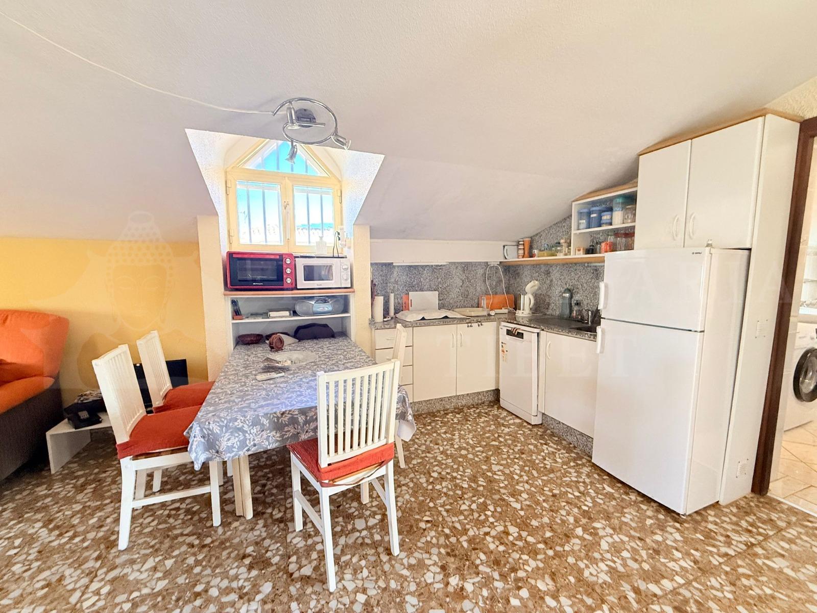 La vivienda se distribuye en dos plantas, ofrece una gran amplitud y luminosidad. En el nivel principal, se encuentra un salón-comedor equipado con amplios ventanales que permiten el acceso a una espaciosa terraza. La cocina es amplia e independiente con zona de almacenaje, dispone también de dos habitaciones (una de ellas con baño en suite) y un segundo baño completo.