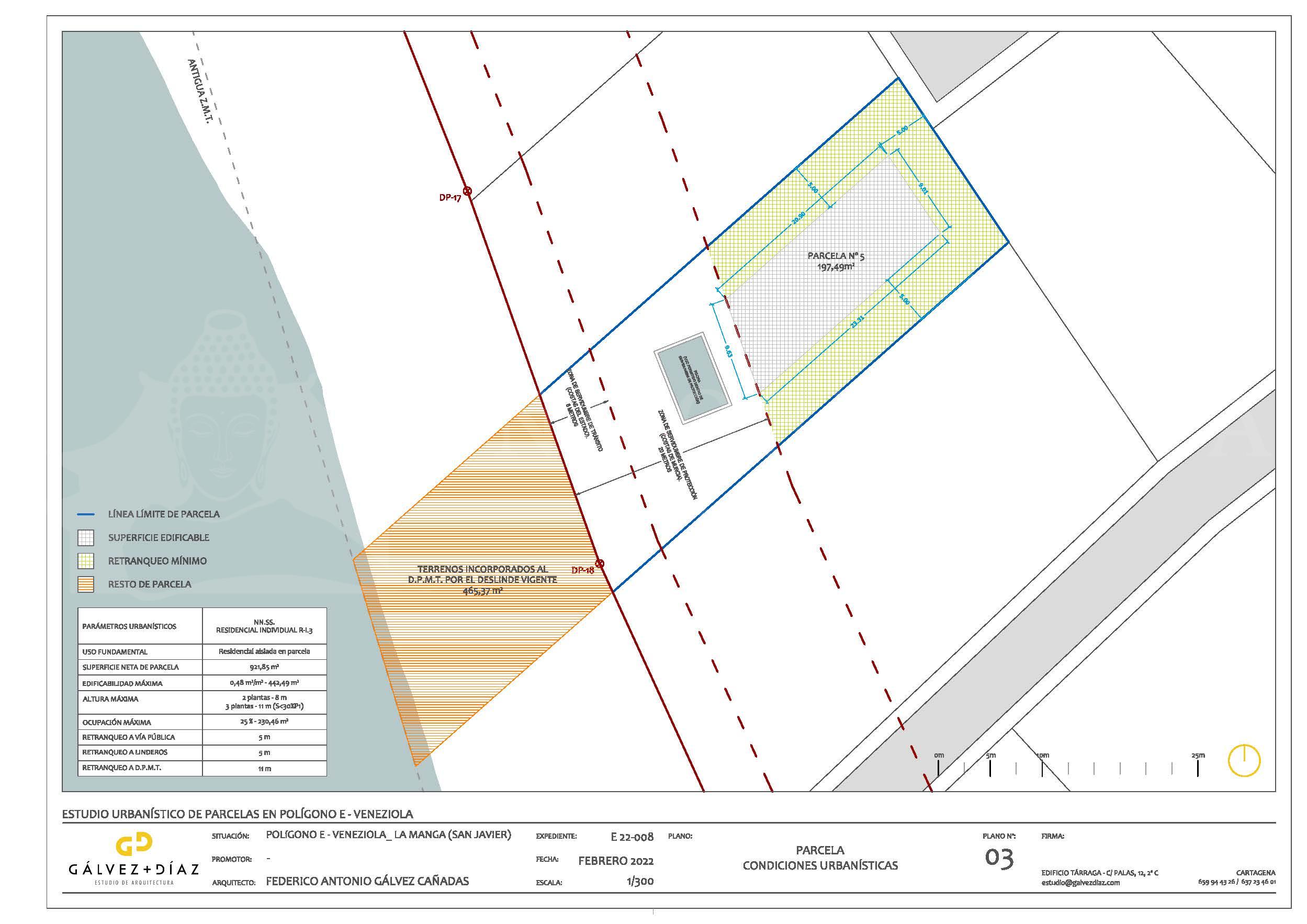 – Construcción: Se permite el 25% de la superficie en planta, distribuido en dos plantas y un sótano.